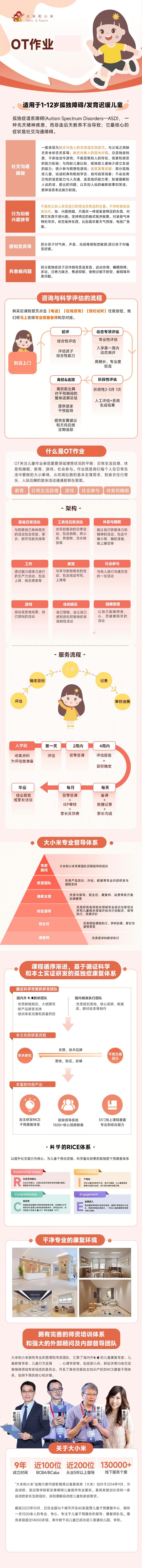 大大米和小米的专业团队在中山三院儿童发育行为中心主任医师邹小兵教授、美国哥伦比亚大学应用行为分析博士袁巧玲、美国华盛顿大学特殊教育博士曾松添、中国香港中文大学医学院言语治疗科专家李月裳教授、中国台湾义守大学职能治疗学系教授张韶霞等专家的带领下,结合多年的干预数据和实践经验,于2019年推出了拥有自主知识产权、更适合中国发育障碍儿童的“RICE社交阶梯干预体系”,2025年推出适用于普通话语言障碍儿童的“MI-TALK干预体系”。多年来,自主培养专业人才数千人,公司持有博士级行为分析师(BCBA-D)、行为分析师(BCBA)、副行为分析师(BCaBA)、语言治疗师(ST)、(职能治疗师)OT及康复治疗师等证书的工作人员超过500人。公司已有 6篇基于大米和小米干预数据的学术论文,发表于Autism、Education Research Frontier、医学研究、 心理学研究评论等国内外学术期刊。